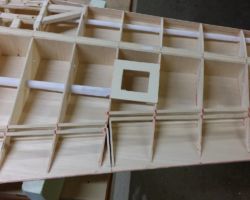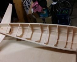 Z.B. das in der Fläche verbaute elektrische Einziehfahrwerk bzw. das elektrische Spornrad, die sich verjüngende Fläche mit unterschiedlich großen Rippen und die Landeklappen.