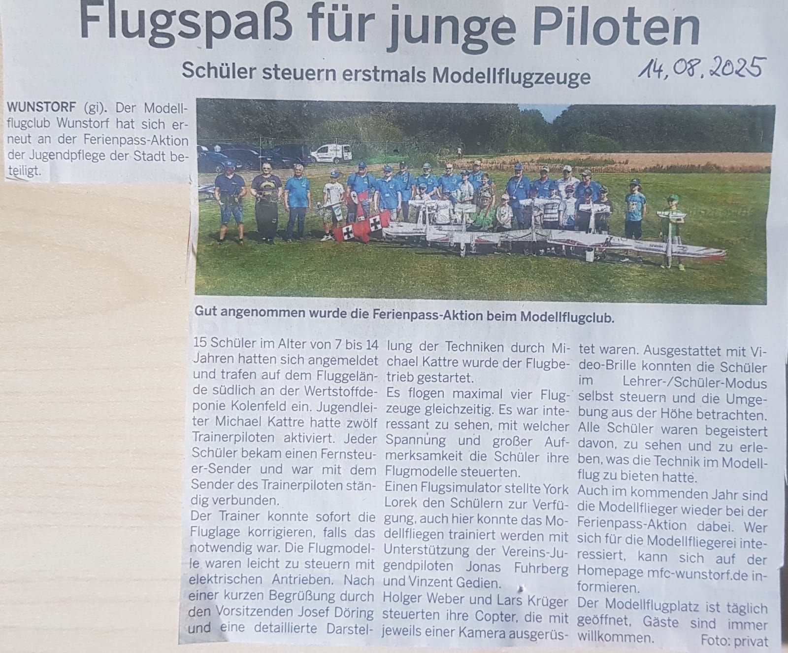 Flugspaß für junge Piloten | Wunstorfer-Stadtanzeiger